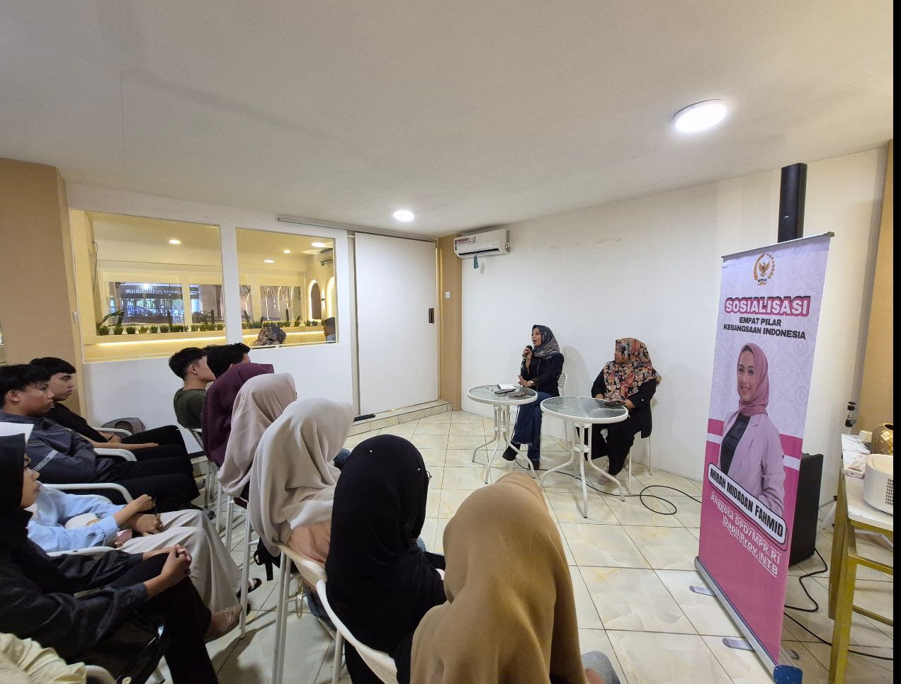 LINGKARINSPIRASI – Anggota DPD RI/Senator asal Nusa Tenggara Barat, Mirah Midadan Fahmid, menggelar kegiatan Sosialisasi Empat Pilar MPR RI kepada masyarakat dan kelompok-kelompok warga di Karang Baru, Kecamatan Selaparang, Kota Mataram, Provinsi Nusa Tenggara Barat dengan tema Ekonomi Kerakyatan sebagai Wujud Pengamalan Pancasila. Kegiatan ini dihadiri oleh pelaku UMKM, pedagang kecil, tokoh masyarakat, dan pemuda yang antusias mengikuti pemaparan materi.